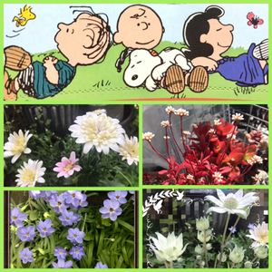 🏷毎月2日はスヌーピー の日 遅くなりましたが 参加させて頂きます 春🌸🌱が来てスヌーピー の仲間はお昼寝かな⁉︎ 庭のお花さん達とコラボしました‼️ 🌱オステオスペルマム "ラブポーション" 🌱フランネル"ウインク" 🌱紅稚児 🌱イエイオン ハナニラ "ジェシー"