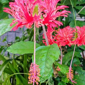 風鈴仏桑花(フウリンブッソウゲ) 雨にも負けず咲いてます🌺 ハイビスカスは1日花ですが この子は数日咲いてます💕