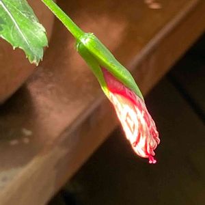 ハイビスカス フウリンブッソウゲ が咲きました🌺 下のは7月9日に咲いたものです。 夏より色も薄く小さいですが 感動です✨ もう一輪咲きそうです🌺