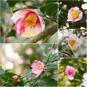 椿の季節ですね🌼✨ CAMELLIA LANDにて 右上から時計周りに 花見車 伯州 有楽 妙姫 赤城