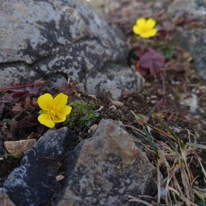 伊吹山の山頂で唯一咲いていた花。 キジムシロ 葉っぱが紅く紅葉してる~💕