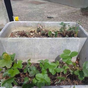 🔹記録用🔹 雨水も当たらない雪囲いの下から5ヶ月ぶりに自由になったワイルドストロベリー🍓 枯れ葉を✂️したら、まだまだイケそうだった💡