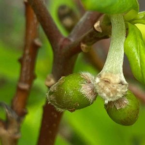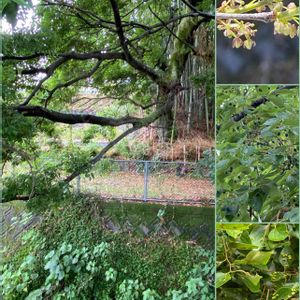 川のそばにある枝葉 ↗️春には花が咲いていた 4月4日 🤳 ☔️散歩 6月6日 🤳 ➡️ポンポンと音がしそうな小さな実がたくさん ↘️下の方では虫コブの方が目立つ ゾワッ😰 ところでこの木の幹はどこ❓ と、辿ってみると向こう岸であった😲🤭 びっしりと苔むして立つ藪の中