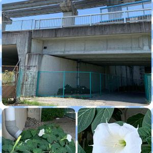 約一年前 金網の隙間から😆🤳今日のお花✨ モノレールの下🚝の道路の下 こんなところに咲いている😊🎶 というのか、生えている😅⁉️ 日陰なので開いている時間が長い☺️❓ 2021.6.21.