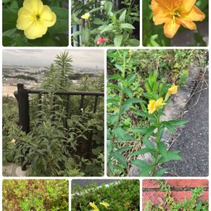 マツヨイグサいろいろ🧐🤨🥴🤔😑 上段 我が家のマツヨイグサ きれいに色変わり 中段 ⬅️一本立ちではない 黄色のまま ➡️一本立ち 黄色のまま メマツヨイグサ?アレチマツヨイグサ? 下段 左 小さい!這わないハマベ?ミナト?マツヨイグサ 中 小さい!這えないコマツヨイグサ 右 小さい!這う這うコマツヨイグサ