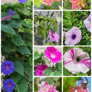 今日の花 アサガオ🤗 真ん中列、上から二段目は、昨年11月3日のもみじ葉アサガオ ツボミも花も色濃くなって、パラパラと咲き続けてくれました(^-^)/