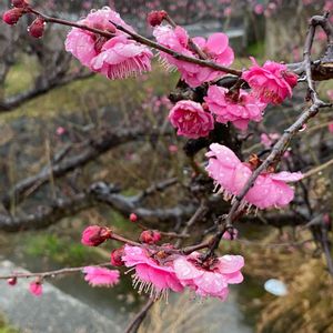 結構な雨の中、つぼみを探して散歩☔️ 紅梅はしっかりと咲きそろいつつある 某神社の禰宜さんによると 梅は一輪二輪の咲きはじめの頃が良いとのこと そう言われてみればたしかに😉 ふくらんだつぼみたちの美しいこと✨ これはちょっと見頃を過ぎつつある⁉️ そうそう 咲き揃う前にいたみはじめる感じやわぁ😅