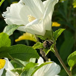 昨日、今日のお花✨探しに歩いていて… フヨウフヨウと頭の中ではつぶやきながら 目はこちらの花を探していた💦 最近よくある😅おつかいアリさん🐜現象🤣 夕陽に包まれる白いお花😊 8月30日 16:28 🤳