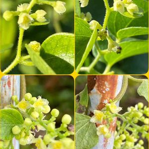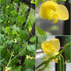 ありましたぞ❗️いましたぞ‼️ 雨柱の真っ只中 足元にどんどん水溜まりができる😵 これはイカンといつも通らない道へ ずいぶんと遠回りになって 帰宅までの歩数を考えてゲンナリ😓 その瞬間、目にとびこんできた黄色い花✨ 小豆🫘の祖先✨ 歩道の手すりにわんさかの豊作⁉️ 足取りが軽くなったよ🎶 9月4日 🤳