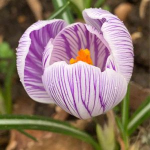 濃い紫色のクロッカスのお隣りに えっ! ひらきはじめた新たな蕾… こんなお花は初めてのお目見えで 植えたこともないのに いったいどうしたのでしょう? 今日のお空は… お日さま・それとも雨? 温かいの・寒いの? ひらくのを迷ってるのかな 不思議な蕾さん