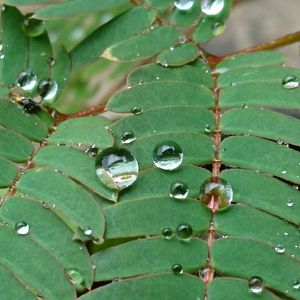 ネムノキの葉っぱ🌱 雨つぶがキラキラしてキレイ❇️✨ ころころ、ころがりそうです(^-^;