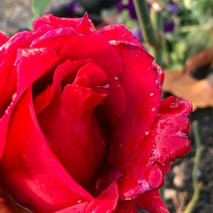 バラ一輪、雨に打たれて咲いていました。 散歩道にて。