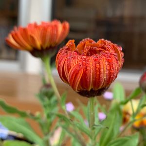 カレンデュラ コーヒークリーム 水滴を纏って。 花びらの裏側の色が最高に可憐だわ( ⁰̷̴͈꒳⁰̷̴͈ ) ほんとに寒い雨の1日でしたね.˖٭☂*¨*•.¸¸✧॰*¨•.¸¸こちら、まだ降っていますよ。