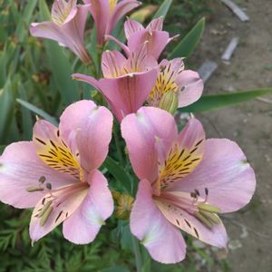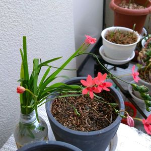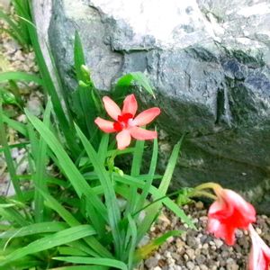 こんにちは☀ アルストロメリア 今年はピンクしか咲かないのか、黄色が咲きません😅 ヒメヒオウギズイセンは、咲き始めました❗夏到来の燃えるような赤です🔥