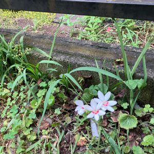 ヒメヒオウギ 街路樹の根元に咲いていました。