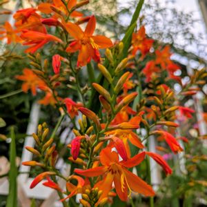 令和7年7月4日(金) モントブレチア(姫檜扇水仙)さん😄💛💛💛毎年綺麗に咲いてくれます🎶鮮やかなオレンジ🍊色が元気をくれます😍✨️ しかし、朝から暑くて雑草との戦いに行く気になれません💦とりあえず今日の予定は、ワンコ達のシャンプー🧴&カット✂️して、気分一新してから考えよう💪✨️ 皆様、良い1日を☘️