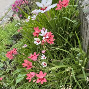 おはようございます😺 昨年の秋に種まきしていた『ヒメヒオウギ』✨やっと開花しました😆🩷 よく道端なんかで見かけていて、マットな感じの色合いが可愛いくて「自分で育ててみたい✨✨」と種まきしてみました🤗🌱 ミックス種だったのであと何色が咲くのか楽しみ🤭✨✨
