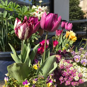 チューリップの球根の上に植えた 種からビオラ。咲き揃いました♪ もりもりになってちょうだい❣️ チューリップとの共演も楽しみです🌷