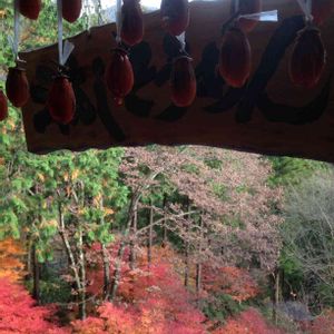 流しそうめんの看板に 干し柿 そして紅葉🍁🍁
