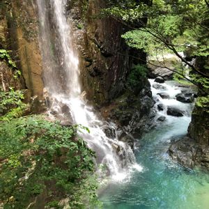 岐阜県中津川市にある付知峡(つけちきょう)に行ってきました 県立公園の中にあり自然いっぱいです 駐車場から一歩入るとひんやり気持ちのいい空気。水が近くなるとさらに涼しくなります~(´∀`~)スズスィー 滝壺のエメラルドグリーンがとても綺麗でした✨✨