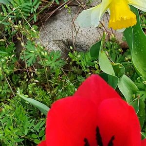 植えっぱなしで咲いてくれるので、良いですね。 カラスノエンドウも残ってますけど。 原種のチューリップ