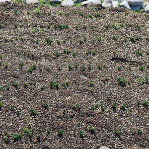 だいぶんと発芽確認できるが、歪んでるし無いところもある。今年でこの球根も処分かなぁ?! チューリップ 40球☓8列