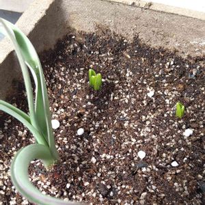 ムスカリが発芽しました! ムスカリとチューリップの球根を年末に植えたのですが、ムスカリが音沙汰無く…。ダメかな、と諦めかけてたらぴょこっと出てきました🌱😆。翌日には春一番の強風🍃。植物って気候に敏感なのを改めて実感!