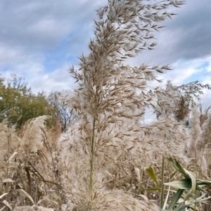 快晴。キラキラしていたヨシをパチリ。そこへオオハクチョウの親子が飛来。 夢中で撮りました。 🤗🤗🤗 散歩にて。 イネ科。