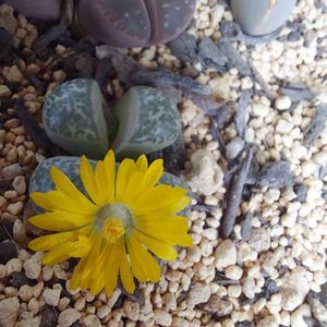 ここ数日毎日雷雨です😣 一日に3回くらいあります。 恐ろしいですね。 今日リトープスが咲いていました。 今年1番の開花です。 リトープスは早いですね。 とっても可愛い🥰