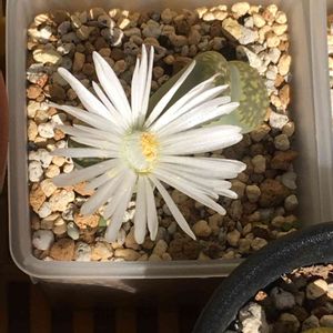 やっと、やっと見れました‼️👀✨ 今朝も朝から出かけていたので、お花どぉかなぁ…咲いてるかなぁ…と思いながら家をあとにしました🚙💨 早めに帰り、リトープスの元へ💚 咲いてるぅ(≧▽≦)💕 この後すぐにお花は閉じ始めました。 間に合って良かったぁ~🎶