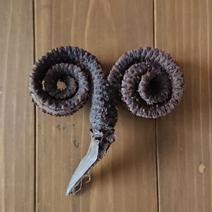 シープホーン🐑飾ってみました。 (パナマ草の花序に切れ目を入れて作られたドライフラワーだそうです)