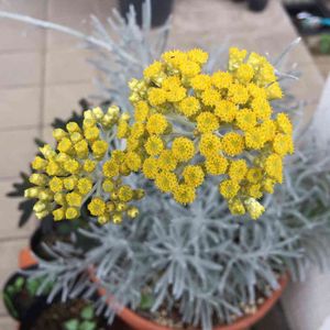ヘリクリサムシルバースノー🌼 満開? ヘリクリサム類の花をここまで咲かせたことは今年が初めて、 黄色いつぶつぶが出て来た時点で毎年✂️ ....引っこ抜いてました。 今年はGSの影響で植物を色々観察して、 ここまで見守ってきました。 つぶつぶがたまらなく気になっちゃう私です😜😅😜😅