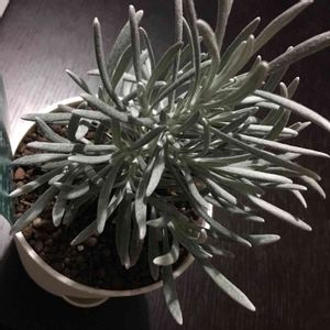 ニョキっと飛び出たこの子の名前を教えてくださいませ😌 どんな花が咲くのか楽しみです🌿✨ ヘリクリサム シルバースノー🌿と判明✨ 回答してくださりありがとうございました😊