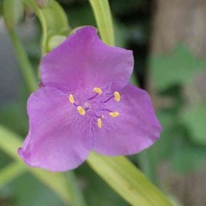 おはようございます。今日から7月ですね。一年も半分が過ぎてしまいました。今朝はムラサキツユクサです。3枚の花弁と黄色葯が目立つ6本の雄蕊、1本の雌蕊が見えます。雄蕊には繊細な薄紫色の毛がついているところが特徴的ですよね。 2018/6/24 撮影。 Tradescantia ohiensis