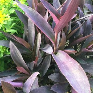 トラデスカンチア?名前が覚えられませんがツユクサの一種だそうです。 綺麗な色合いですが、緑一色の葉が出たら摘まないと緑一色になっちゃうらしいので心が痛みそうな草ですw 葉には細かいラメが施されてるようにキラキラしてます。