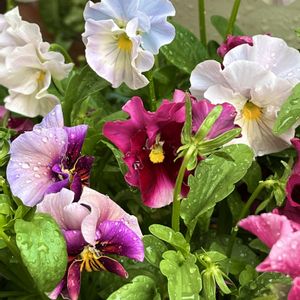 おはようございます😃 今日も午後から雨予報です☂️ パンジー 🤍💙シエルブリエ💙🤍 💜💛マシェリマダム💛💜 ❤️💛マリリーン❤️💛 モリモリと徒長❣️ 今期これが最後のお姿です💗 沢山楽しませてもらいました💝