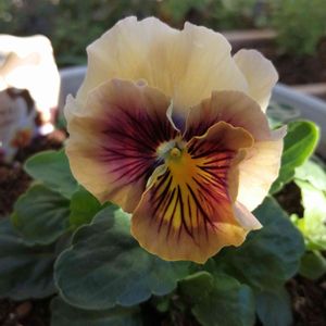 パンジー マシェリマダム とてもシックな色のパンジーです。 一目惚れしてしまい迷う事なくすぐさまカゴへ…。 寄せ植えにも似合いそうです。