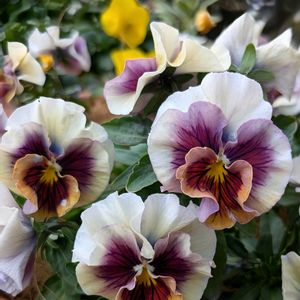 パンジー マシェリマダムさん🌸 コロンとまぁるいお顔のマダムさん 花数増えてきてかわちくなってきました ↘️のココヤシファイバーが ボサボサなのはスルーしてね😂