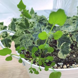 ヘデラカノンとリサを植えている鉢です。カノンとリサ意外の何かが育っているのですが、これは何だろう?雑草。。。??😅