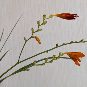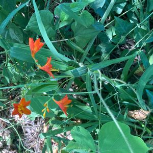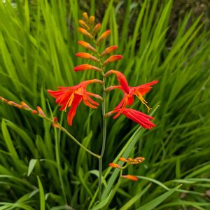 ぱっと目を引くお花が咲いていました😊 ヒメヒオウギズイセン。 アヤメ科ヒオウギズイセン(クロコスミア)属のお花。 鮮やかなオレンジ色のお花で、なかなかのど根性な場所で咲いていました🤗