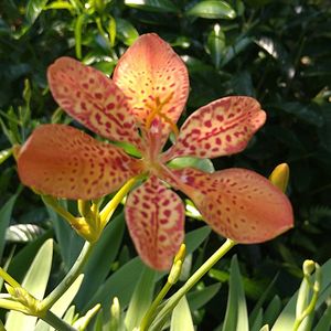 今日のお花 ヒオウギですが 🏷️今日のお花に便乗 に参加させていただきます ヒメヒオウギズイセン アヤメ科ヒオウギズイセン属の雑種 ヒオウギズイセンとヒメトウショウブの交配種でどちらも南アフリカ産の交配種ですが耐寒性に優れ繁殖力も旺盛なので全世界で野生化しているようです 花期 7〜8月 葉は剣状、オレンジ色の花をつける 7/7撮影