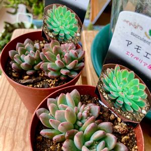 アモエナ(左側) エケベリア属 マクドガリー(中央) グラプトベダルム属 タイトゴメ(右側) セダム属 東北地方も春になったらカクト・ロコさんのおニュー1号苗が続々とお店に搬入されているこの頃。 初心者🔰にはとっても有難く嬉しい(*^^)v