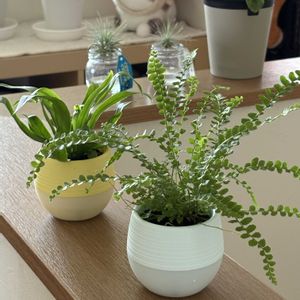 会員優待セールハガキが届いていたホームセンターにようやく行けました😆 土や壊れていた散水用ホースのシャワーヘッド?などなどの他にやはり植物も連れ帰ってしまいました🤣 ・ヤマアジサイ 紅(クレナイ) ・セダム トリカラー(コーカサスキリンソウ?) ・ネフロレピス ダフィ 紅は処分価格?250円、セダムも250円、ネフロレピスはなんとこちらも処分価格165円😳✨ 紅は大昔、庭植えで育てていましたが★にしてしまい、またご縁があれば…と思っていました☺️ セダムトリカラーは、以前おまけでカットした枝?葉?をいただいて根が出ていたのですが夏の暑さでこちらも★に…😓大きめの苗でリベンジです✊ ネフロレピス ダフィはみなさんの投稿でネフロレピスが気になり始め、ダフィの丸みのある葉がかわいいなぁ…と思っていたところだったのでお迎え✨ 早速全て黒ポットから鉢に植え替えしました! ネフロレピスはすごく目が細かい黒土?に植えられていましたが、うちの観葉植物はほぼ全て、プロトリーフさんの室内用多肉・観葉植物の土で植えているので、黒土を少し落として一回り大きな鉢に入れ、周りにそのプロトリーフさんの土を足しました… でも、あまりに土のキメというか粒というかが違いすぎて不安です…😅 こまめに水やりをしたら大丈夫かな⁉️ それとももう少し細かい土の方がいいのかな⁉️ 様子を見ていきたいと思います😅
