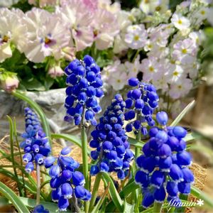 こんにちは😄 小さな鉢に植えっぱなしの ムスカリ ビックスマイルさん💙 また咲き始めました💓💓 壺型の縁取りが白くって、茎葉が短くて 可愛いです😄 良い週末をお過ごしくださいね🍀