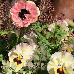 2021.3.3のパンジーと寄せ植えしてるアネモネ。:°ஐ♡* 花びらが更に開いてお花も大きくなりました🥰