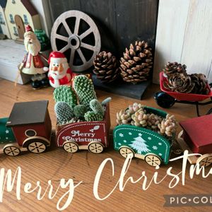 クリスマス汽車ポッポに、折れた小さなサボテンと多肉ちゃんを寄せてみました🚂🎶 サンタ🎅さんも登場して少しづつクリスマスっぽく🎄😄 🏷️クリスマス月間