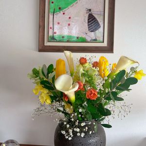 今朝の仕事終わり 知人宅に用事がありお邪魔しました🙂 玄関にとっても素敵な生け花が飾って ありました。素敵な絵🖼と 洒落たおもてなしですね💠 🏷煌めきの金曜日 (初参加させて頂きます♪) 🏷びっくりポン‼️