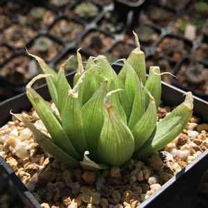 Haworthia lockwoodii, Floriskraal Dam この採取地産は窓が目立たなく透明度もかなり低いです。 しかしながら葉先が簡単に枯れ込み、若い株でもそれっぽい草姿になりやすいと思います。 根がクソ弱ロック