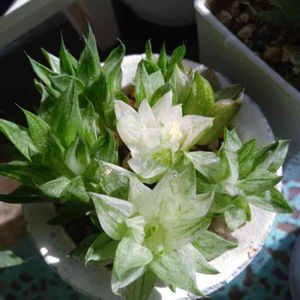 おはようございます 今朝は旦那さんが五反田TOC即売会で狩ったハオルチア氷砂糖✨❄️✨ ホントにきれいな真っ白さです。 カタチも綺麗です❗️ ここまで白いと成長はゆっくりかな?