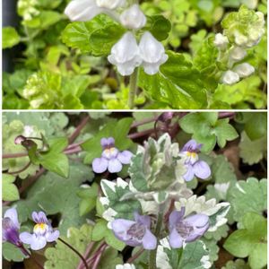 🤍白い立浪草🤍咲き始めました〜...♪*゚ 💟ツタバウンラン&グレコマバリエガータ 小さな庭の片隅に、可愛いお花✿.*・自己満エリアです♡⃜♡⃜😆🎶 グレコマにお花が咲くって知らなかった〜😅